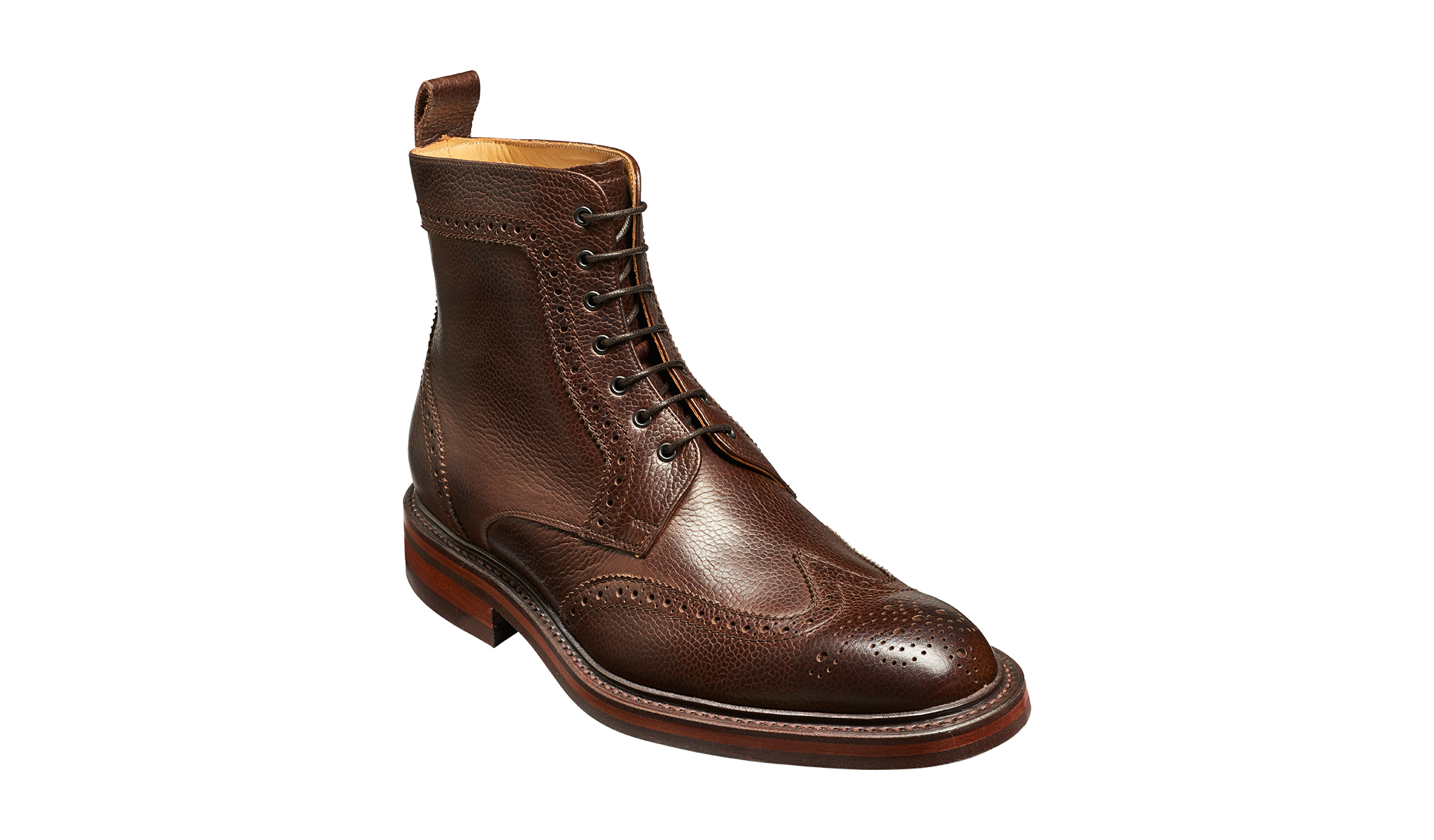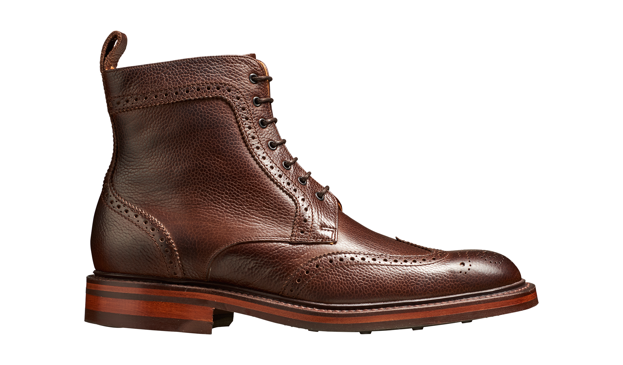The Calder is a rugged wing-cap boot available in four grain leather colour options with a Dainite rubber sole. Perfect for country pursuits or an alternative aesthetic for smarter attire.