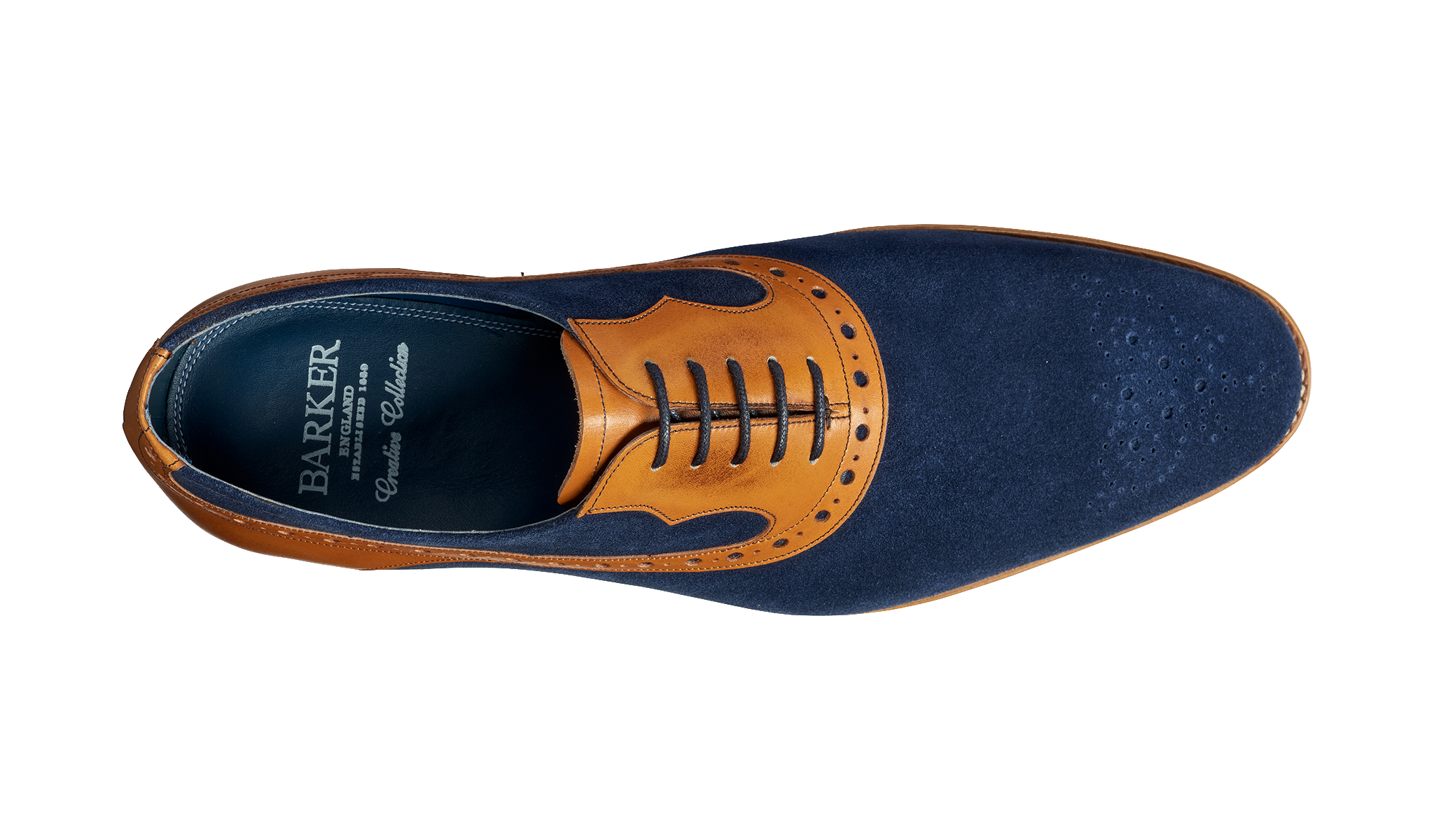 A distinctive oxford with a fine toe punched medallion detail. Available in contrasting suede and calf options.